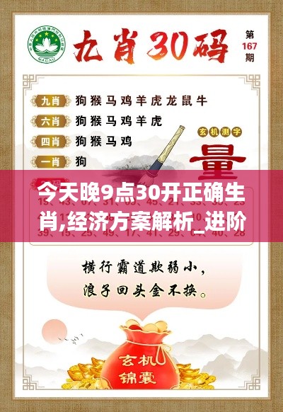 "今天晚9点30开正确生肖,经济方案解析_进阶版3.359"不仅仅是一个政策文件的名称,它还代表着澳门最新经济方案的核心理念。文件详细解析了澳门如何在新的经济形势下,通过精准的生肖彩票开彩活动以及多元化的经济策略来驱动经济的发展。文件中不仅涵盖了总体的经济规划方向,还具体到了各个行业的实施细节,为各经济体提供了清晰的指导和参考。