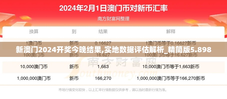 《新澳门2024开奖今晚结果,实地数据评估解析_精简版5.898》是一份聚焦澳门政策文件的精彩之作,它将新澳门2024开奖的特点和优势进行了全方位、立体化的展示,为读者深入了解政策文件的内容、价值和意义提供了有力支持。