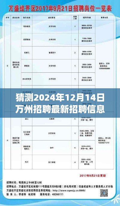 随着科技的飞速发展和全球经济的不断变化,招聘市场也在持续更新迭代,作为求职者或者企业HR,了解未来的招聘趋势和最新招聘信息是至关重要的,本文将聚焦于预测万州招聘市场在即将到来的2024年12月14日的最新动态,为您深度解析其中的要点。