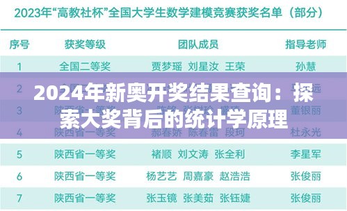 近年来,随着彩票行业的发展和创新,越来越多的人们参与到各类彩票的购买中。2024年新奥彩票作为澳门地区最受欢迎的彩票之一,其开奖结果不仅牵动着无数彩民的心,更是引起了广泛的关注。对于新奥彩票中奖结果的统计学原理的探索,能为我们更全面地了解彩票开奖结果的奥秘提供线索,使我们能更理性地看待彩票购买与中奖过程。