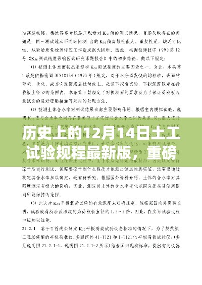 亲爱的小红书们,今天我们要一起回溯历史,探寻那个值得纪念的12月14日,见证《土工试验规程最新版》的诞生与演变,这篇文章将带你深入了解这一规程的出台背景、实施细节以及对我们现实生活的影响,让我们共同见证这一历史时刻吧!