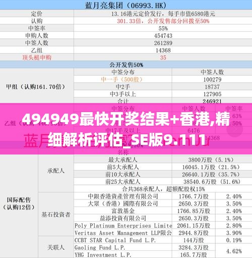 在澳门这个充满激情与机遇的都市,彩票业一直是广大市民和游客热衷的话题之一。今天,我们要深入探讨的就是备受瞩目的“494949最快开奖结果+香港,精细解析评估_SE版9.111”。这篇文章将从不同的角度,为读者呈现最新的开奖信息和深入的解析评估,旨在激发您对彩票的浓厚兴趣,并增加您对行情的了解。