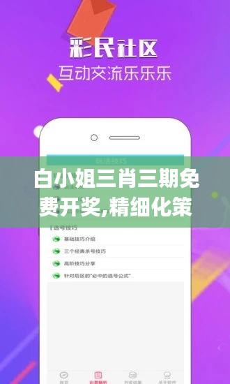 综上所述,《白小姐三肖三期免费开奖,精细化策略定义探讨_钻石版13.838》作为澳门博彩政策的重要组成部分,对于白小姐三肖三期免费开奖的指导和规范具有重要意义。通过对这一文件的深入分析与探讨,我们可以预见澳门博彩业将会更加注重服务质量的提升、风险的控制和创新精神的培养。同时,政策的实施也将助力澳门在全球博彩市场中占据更有利的竞争地位。