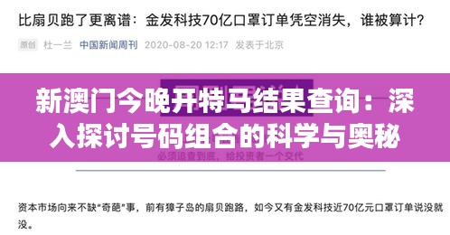 澳门,作为国际知名的博彩和旅游胜地,拥有深厚的文化底蕴和独特的博彩文化。特马作为澳门最受人瞩目的博彩项目之一,不仅以其神秘的特性吸引着广大玩家,更因其中奖号码组合的复杂性挑动着众多爱好者的好奇心。今夜,新澳门特马结果将再次揭晓,而我们,将一同深入探讨这些号码组合背后的科学与奥秘。