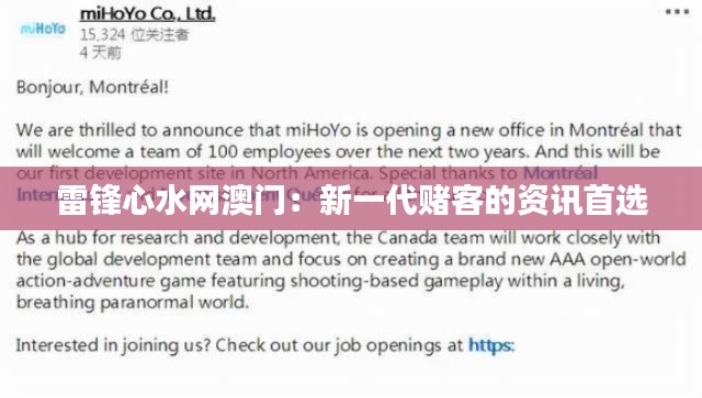 雷锋心水网澳门:新一代赌客的资讯首选,已经成为澳门博彩行业的一个响亮品牌。这个平台不仅仅是一个简单的新闻发布站,它更是一个综合性的信息枢纽,为广大赌客提供全方位的博彩服务。