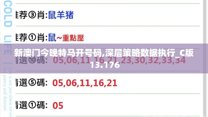 “新澳门今晚特马开号码,深层策略数据执行_C版13.176”是澳门政府针对博彩行业提出的全新策略,旨在通过精准的数据管理和策略执行,优化博彩业的运营,增强澳门的经济活力和国际竞争力。特马开号码作为这一策略的核心组成部分,意在通过现代化的数据分析和科学技术手段,提供更加公正、透明和高效的博彩环境。