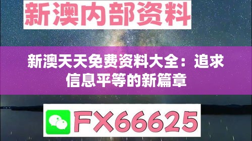 在这个信息爆炸的时代,获取准确的知识、信息已经成为生活中不可或缺的一环。但是,社会不平等常常使得一部分个体无法平等的获取到他们所需信息,特别是学术、专业领域的高端资源。认识到这一问题的普遍性与严重性,"新澳天天免费资料大全"暨"追求信息平等的新篇章"应运而生。我们旨在通过提供质量上乘、覆盖广泛的资料与信息,来缩小知识获取差距,让每一个人都能在探索知识的海洋中畅游无阻。