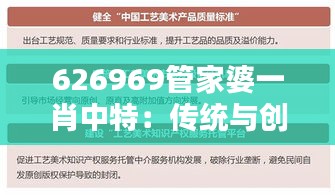 在现代社会的快速发展中,传统与创新的融合成为了一个不可忽视的主题。澳门,作为一座历史悠久且充满现代活力的城市,一直致力于在不同领域实现这种融合。今天,我们将深入探讨“626969管家婆一肖中特:传统与创新的融合艺术”,探索在澳门政策文件中如何通过这样的艺术形式,实现文化的传承与发展。