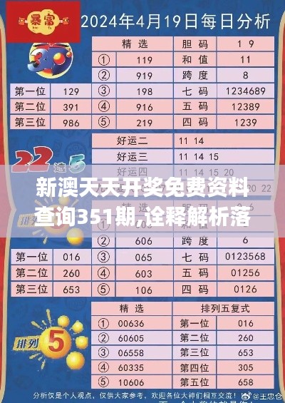 在新澳天天开奖免费资料查询351期中,我们可以看到澳门彩票政策的演变过程,以及政策落实的重要性。澳门彩票作为一种回馈社会公益的重要方式,其政策文件的每一次更新,都是为了更好地规范彩票市场,提高彩民的参与度,确保彩票资金的合理应用。