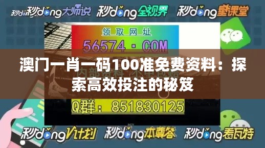 澳门一肖一码100准免费资料:探索高效投注的秘笈