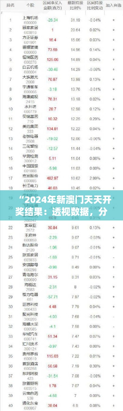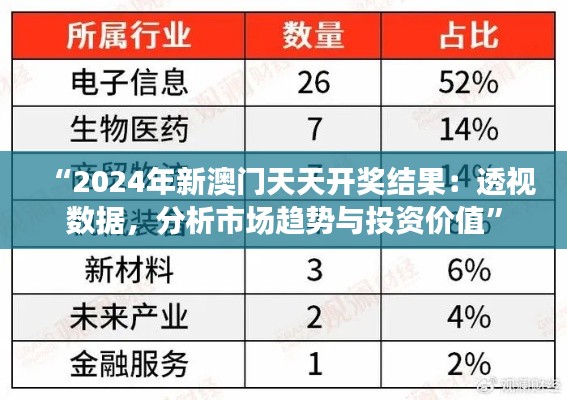 “2024年新澳门天天开奖结果:透视数据,分析市场趋势与投资价值”揭示了澳门博彩业的最新发展动向,并提供了对市场未来趋势的深入分析。随着澳门博彩业的持续演进,投资者和政策制定者需要了解各种开奖数据,以便制定明智的决策。本文旨在通过详细分析澳门天天开奖结果,揭示市场趋势,并探讨其投资价值。