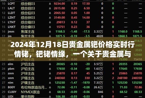 在繁忙的都市中,有一个名叫小杨的年轻人,他对贵金属市场有着浓厚的兴趣,这一天,也就是2024年12月18日,贵金属市场又迎来了新一轮的行情波动,小杨特别关注钯和铑的价格实时行情,因为他知道这两种金属不仅具有极高的经济价值,还承载着他与朋友们之间深厚的情感纽带。